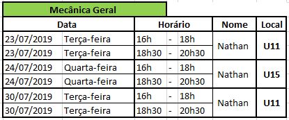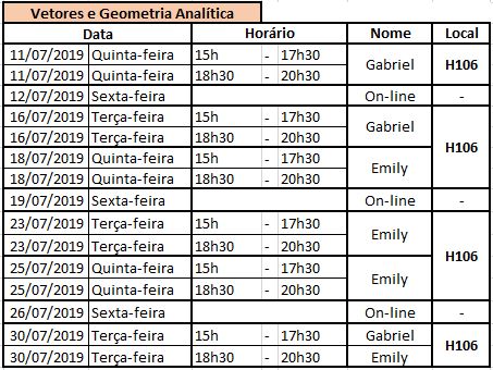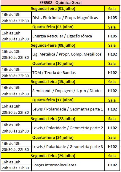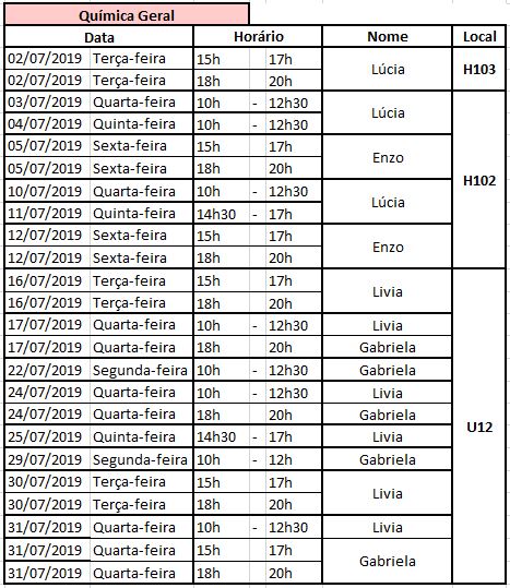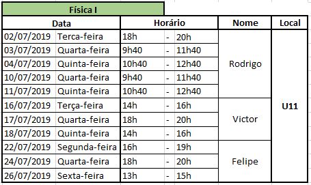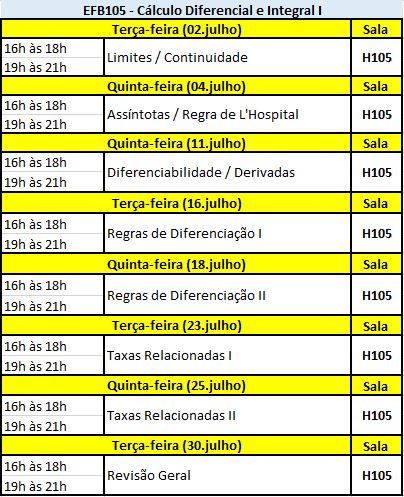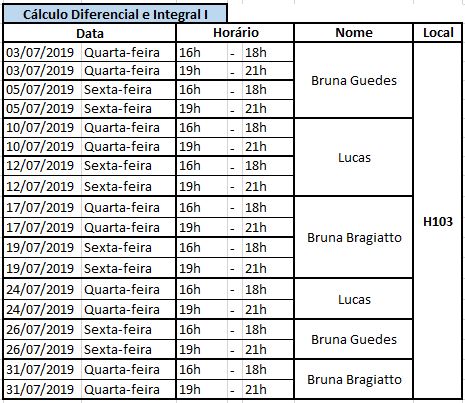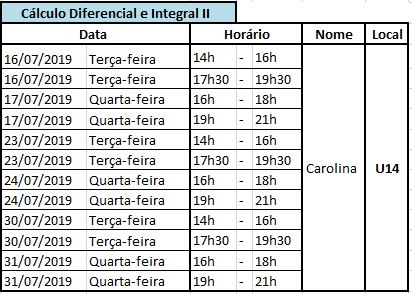 No mês de julho serão oferecidas atividades de apoio às provas substitutivas aos alunos da 1.ª e 2.ª séries de Engenharia para as disciplinas: