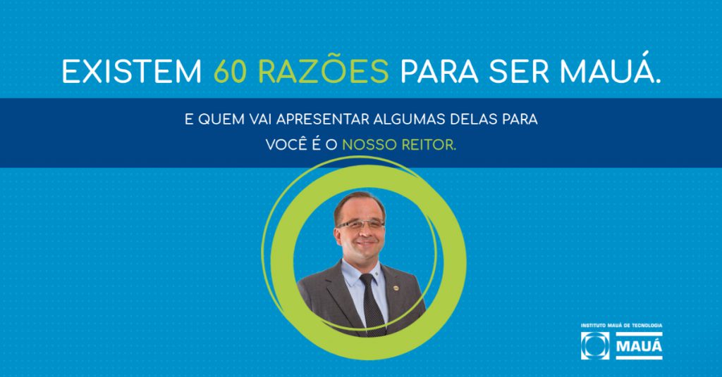 Existem 60 razões para ser Mauá. E quem vai apresentar algumas delas para você é o nosso Reitor.
