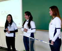 Camila, Juliana e Beatriz, alunas da 3ª série de Administração da Mauá, apresentam projeto desenvolvido para o Restaurante Colibri Self Service