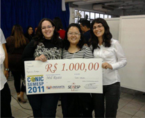 As alunas da Engenharia de Alimentos do Instituto Mauá de Tecnologia Carolina Battistini, Cláudia Yukie Koga, Erica Sayuri Ichimura e Marjorie Mary Arakelian, sob a orientação da prof.ª Cristiane Maria Barra da Matta, foram premiadas com o projeto “Desenvolvimento de Bebida Fermentada Simbiótica à Base de Soja Verde Sabor Melão” na categoria “Em Andamento” da área de conhecimento Engenharias e Tecnologias, no 11.º Conic - Congresso Nacional de Iniciação Científica.