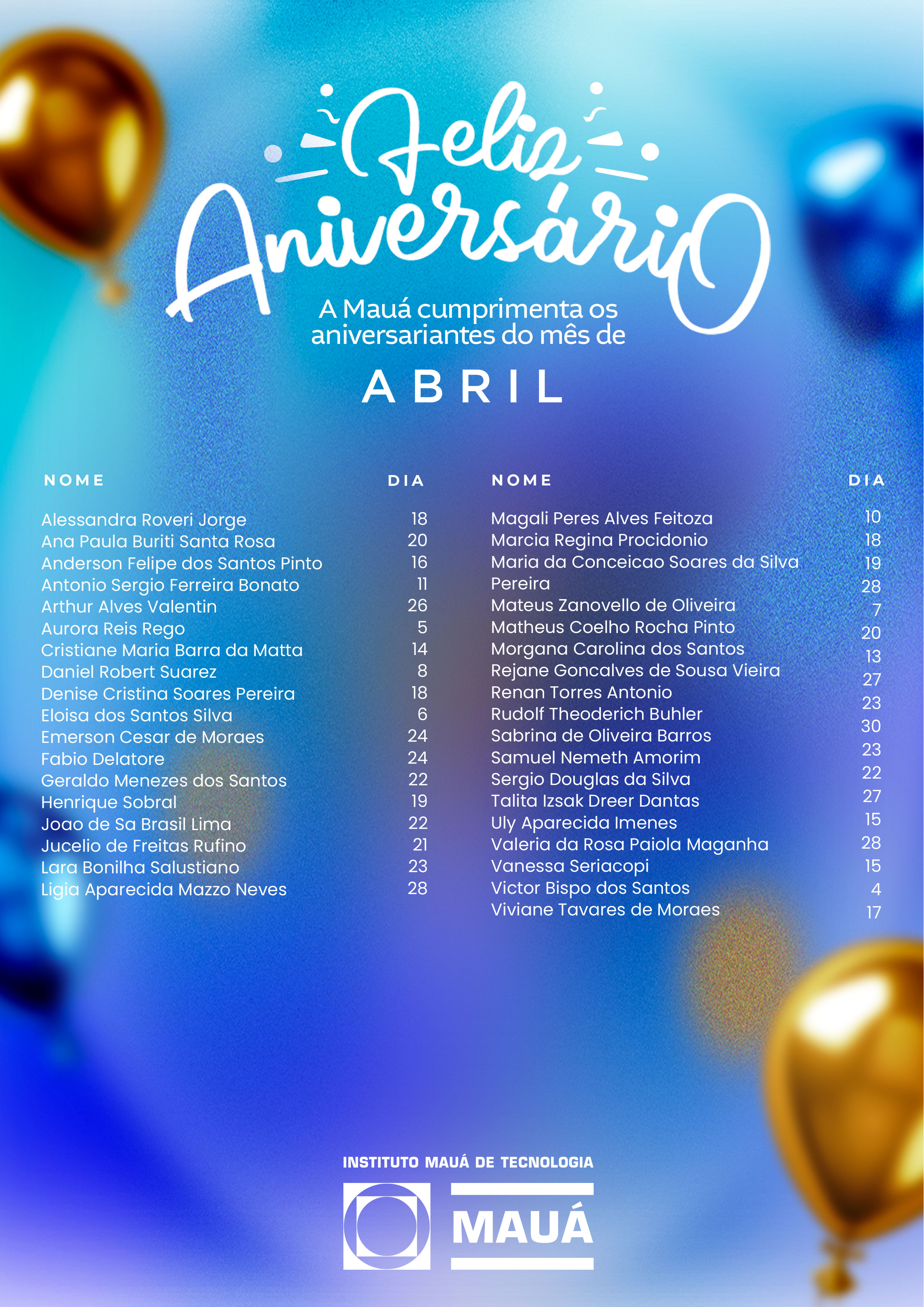 Confira os Aniversariantes de abril Clique aqui.