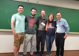 Parte da equipe vencedora "Os Wingers", Patrick (UIUC), Felipe da Mata (IMT), Prof. Joseph Saab (IMT), Jamie (UIUC), Prof. Brian Woodard (UIUC).