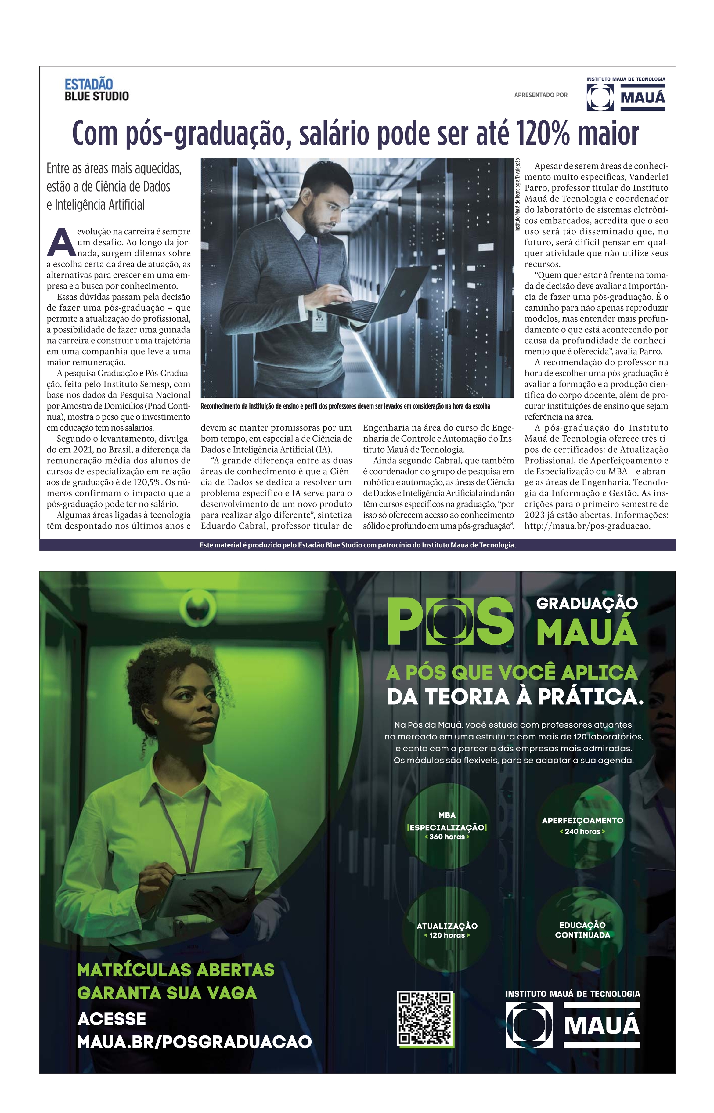Notícias Na Mídia Com Pós-Graduação, salário pode ser até 120% maior Com Pós-Graduação, salário pode ser até 120% maior Publicado em: 08/12/2022 Blog Mauá em Foco Artigos Mauá na Mídia