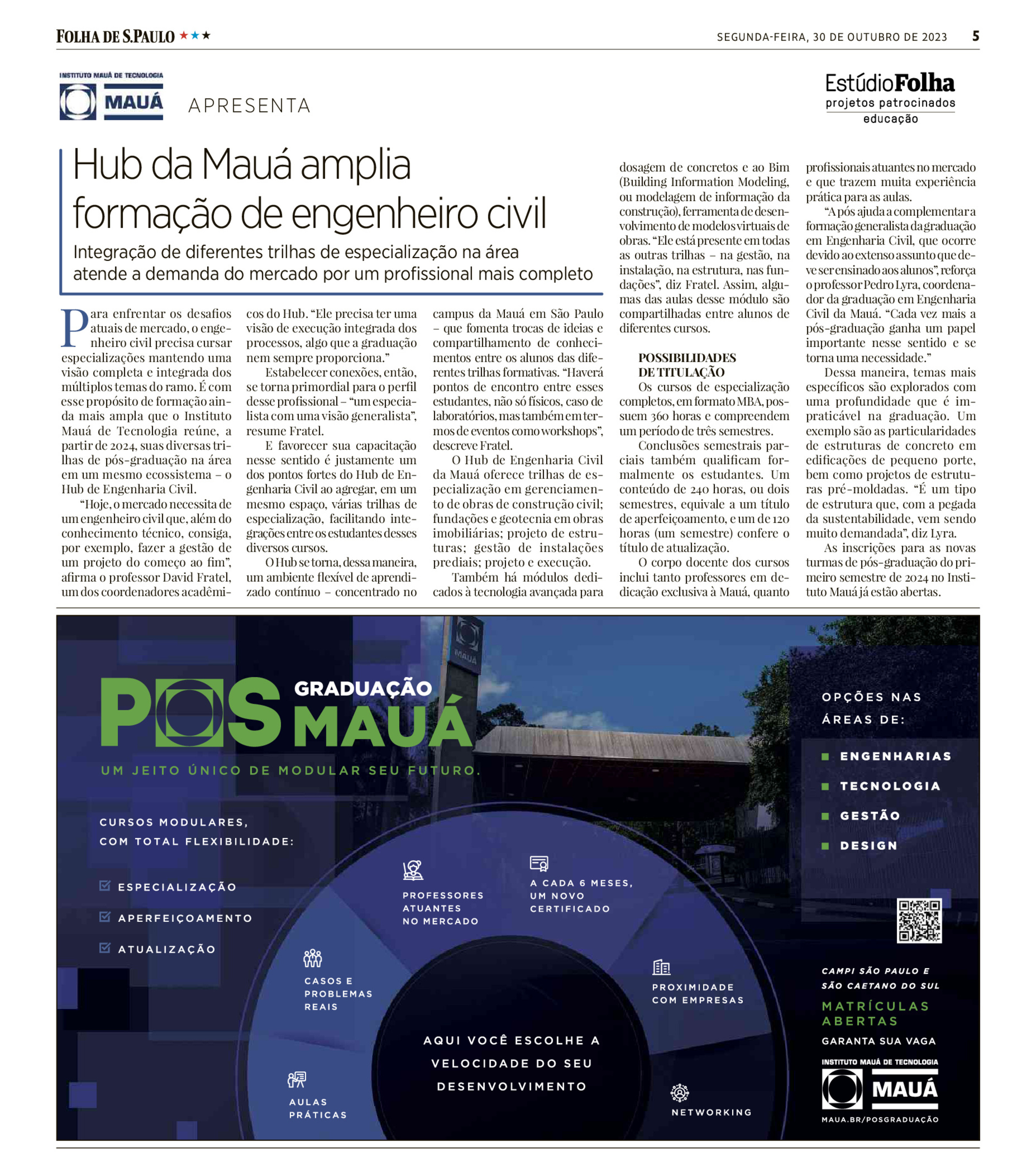 Notícias Na Mídia Hub da Mauá amplia formação de engenheiro civil Hub da Mauá amplia formação de engenheiro civil Publicado em: 30/10/2023 Blog Mauá em Foco Artigos Mauá na Mídia