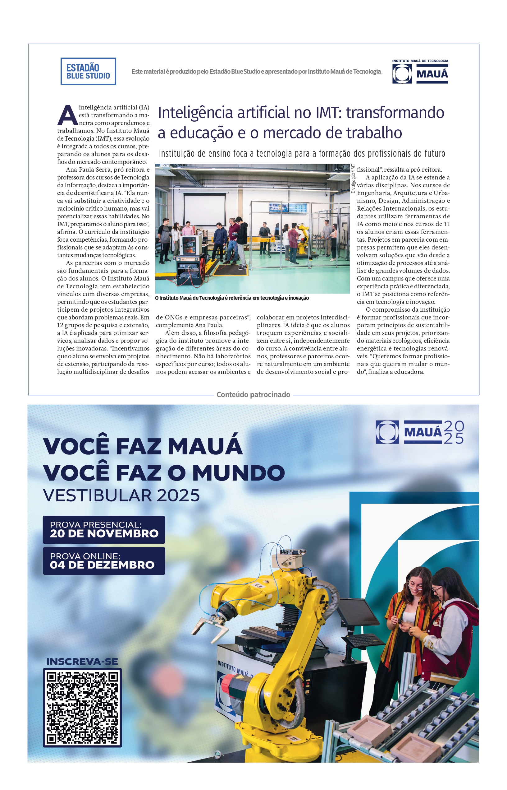 Notícias Na Mídia Inteligência artificial no IMT: transformando a educação e o mercado de trabalho Inteligência artificial no IMT: transformando a educação e o mercado de trabalho Publicado em: 29/10/2024 Blog Mauá em Foco Artigos Mauá na Mídia