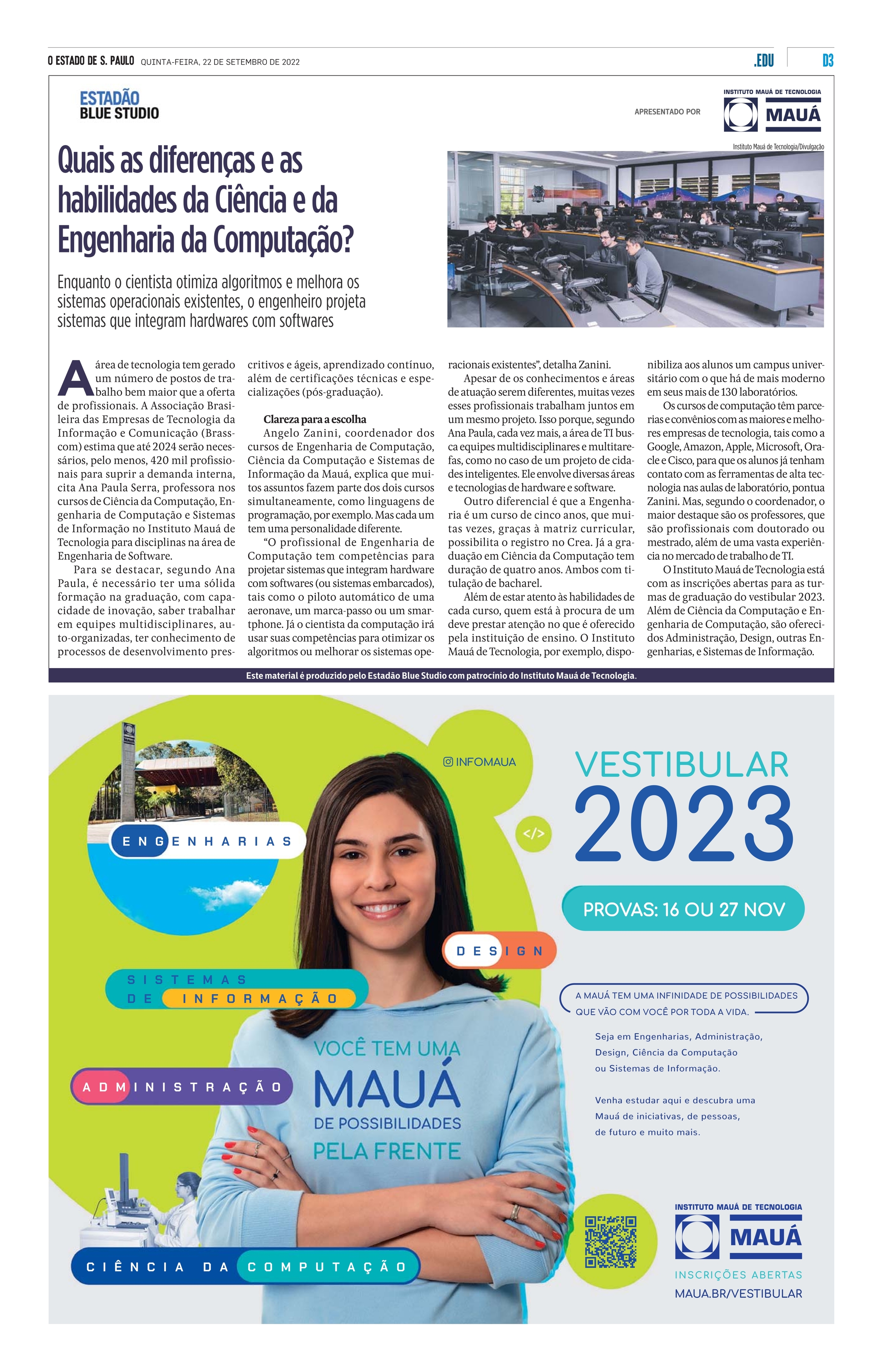 Notícias Na Mídia Quais as diferenças e as habilidades da Ciência e da Engenharia da Computação Quais as diferenças e as habilidades da Ciência e da Engenharia da Computação Publicado em: 29/09/2022 Blog Mauá em Foco Artigos Mauá na Mídia