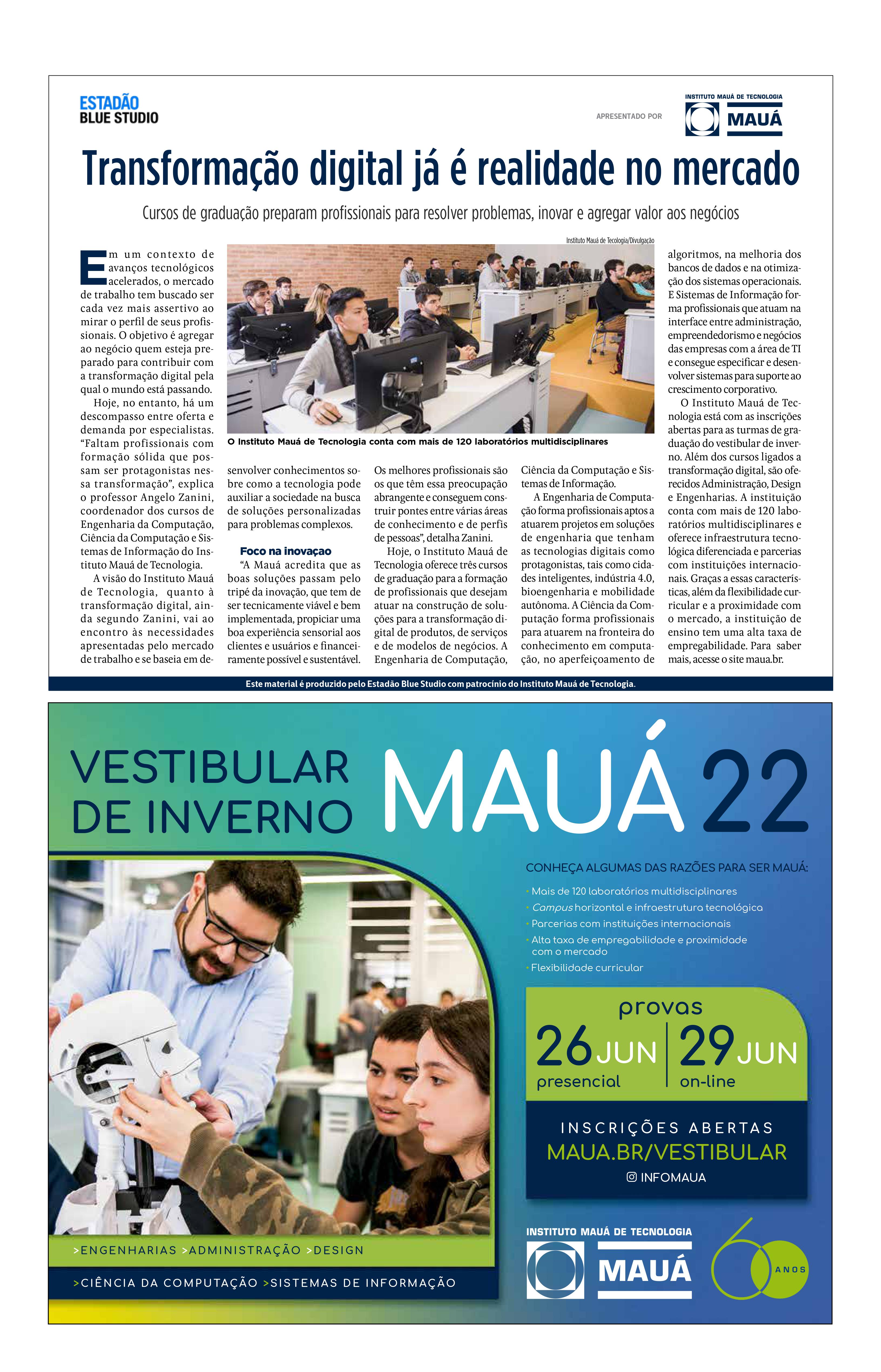 Notícias Na Mídia Transformação digital já é realidade no mercado Transformação digital já é realidade no mercado Publicado em: 20/06/2022 Blog Mauá em Foco Artigos Mauá na Mídia